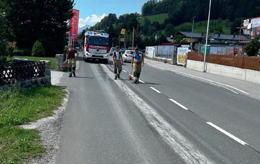 Ein Kraftstofftank eines Fahrzeugs wurde durch einen verlorenen Radkeil auf der Felbertauernstraße aufgerissen. Aufgabe der Feuerwehr Mittersill war es, den ausgelaufenen Kraftstoff zu beseitigen.