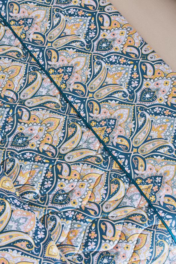 Imprimé, matelassage motif végétal, finition retour de 3 cm.
