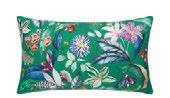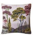 Face brodée, dos uni. Finition passepoil. Fermeture par zip en bas de la housse.