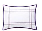 Flat sheet with 4” hem. Iris color fancy piping finish. Fitted sheet in coordinated design. Reversible pillow case with 2" flounce and Iris color fancy piping finish.