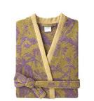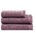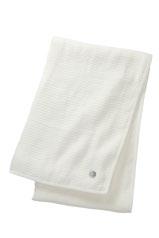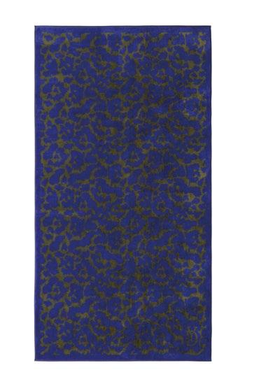 100% organic cotton, 530 gsm. Jacquard ciselé teint en pièce uni coloris iris. Finition franges. Sculpted dyed jacquard, solid Iris color. Fringe finish.