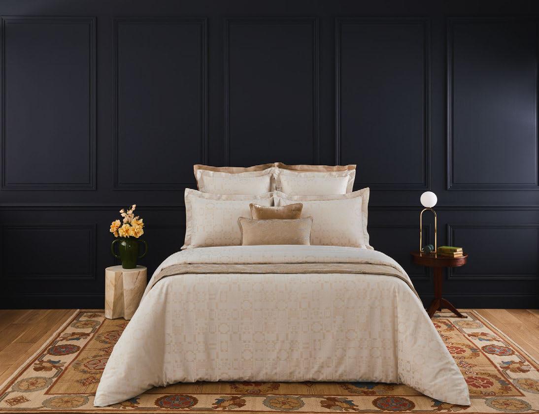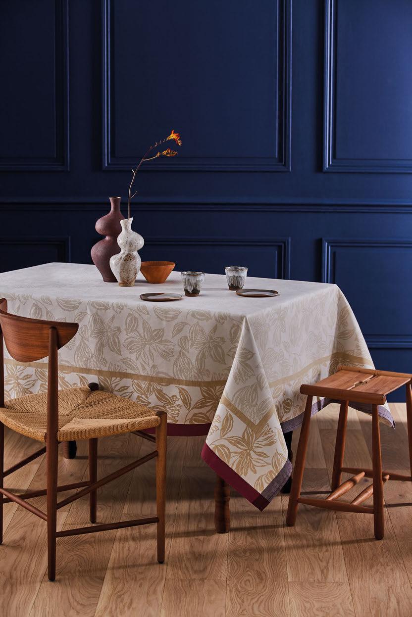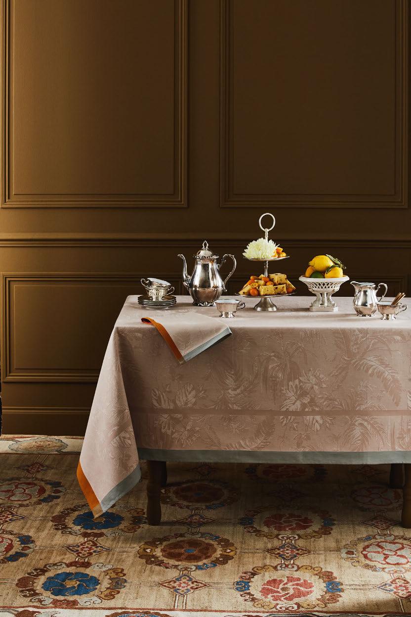 Inspired by the rich parquet oor of Versailles, this geometrically harmonious weave plays on light and shadow. A Jacquard model of contemporary luxury with a naturally golden sheen.