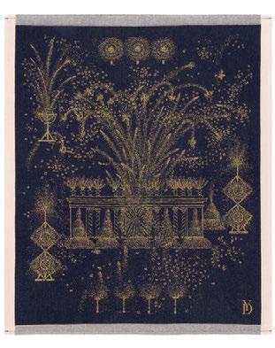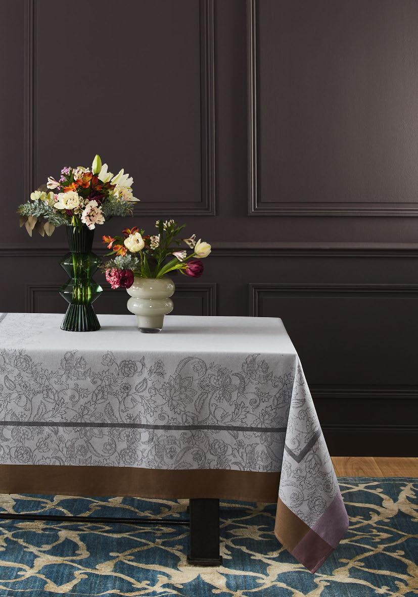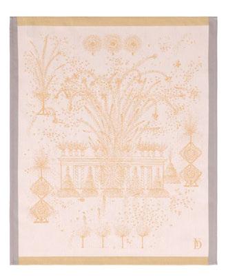 71" × 94", 98" × 98", 112" × 98". 53 % laine / 47 % coton. 53% wool 47% cotton. Jacquard, finition ourlet de 3 cm et coins onglets. Disponible en 2 coloris Tilleul et Platine. Jacquard fabric, 3 cm hem finish and mitered corners. Available in 2 colors Tilleul and Platine. Italy
