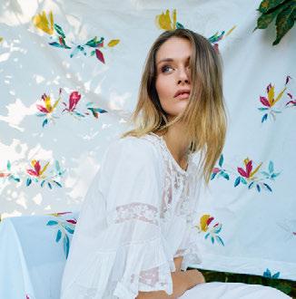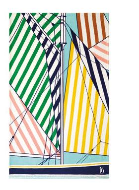 A model that recalls distant journeys and great discoveries told in a painted décor. A trendy print with soft colours and pen-drawn patterns.