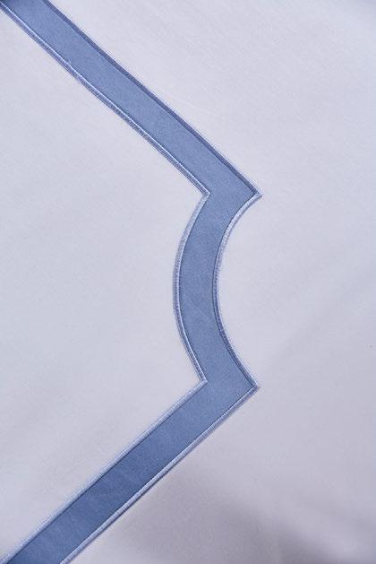 Drap plat avec parement appliqué de 10 cm au dos. Finition passepoil irisé col Iris.