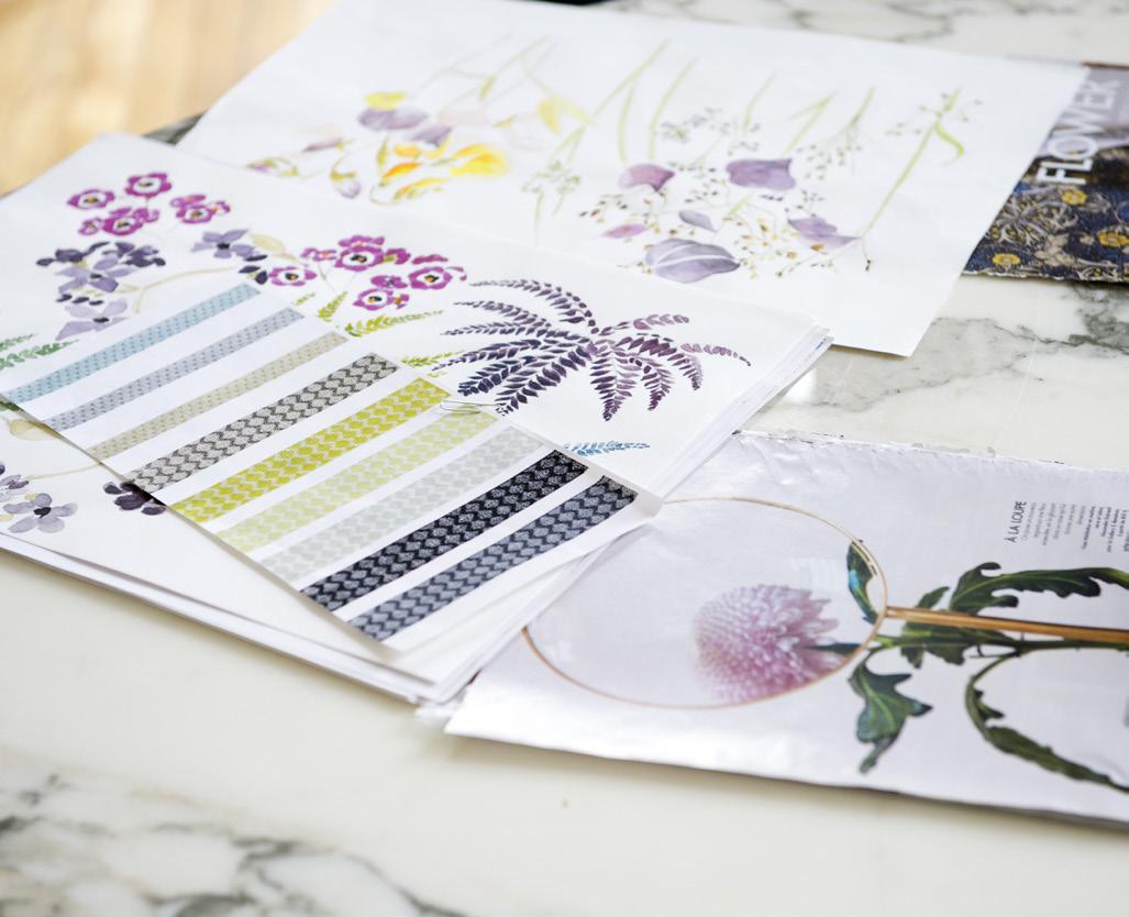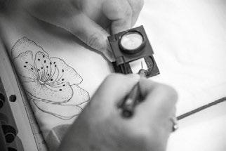 dance on their delicate stems. Frosted blue watercolour, Iris ink and pale gold silhouettes create a drawing that exalts nature.
