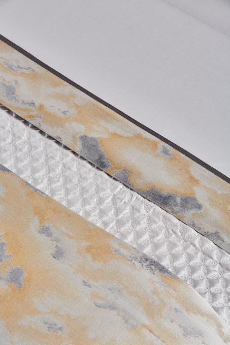 Voir tarifs. See price list. Satin, 100 % coton peigné longues fibres biologique, 120 fils/ cm². Rembourrage 100 % polyester. 100% long staple combed organic cotton sateen, 300 thread count. Padding 100% polyester. Uni, matelassage pois, finition biais. Solid color, dot shape stitching, bias finish. Tunisia
