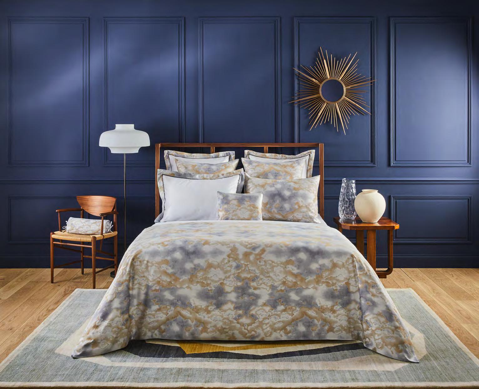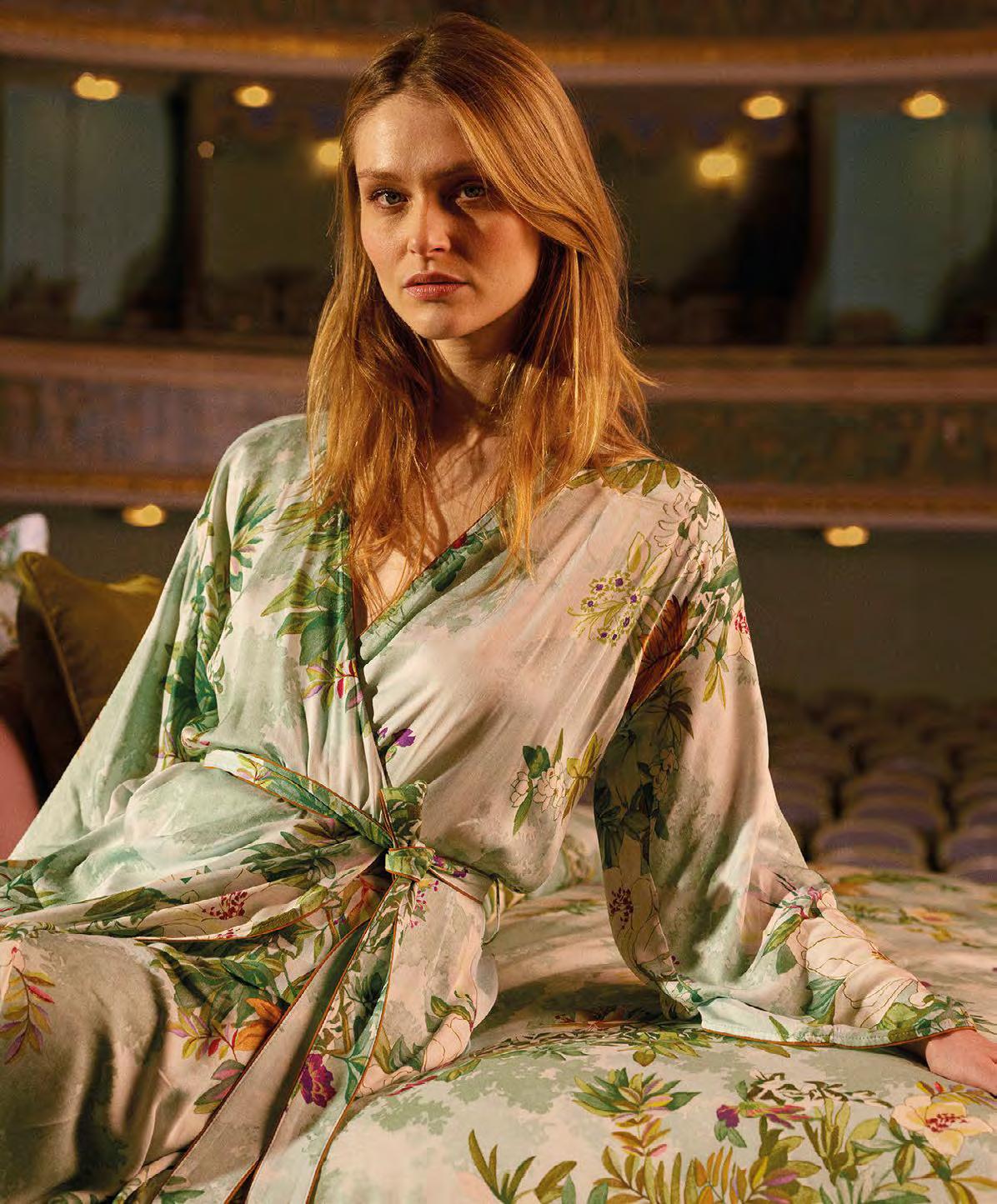 L’imprimé spectaculaire Yves Delorme. Comme un conte onirique. Un imprimé de paysages lointains et d’encres diluées se diffuse sur du satin de coton. Formes chics, pures et modernes. Pyjama inspiré des tenues d’Orient.