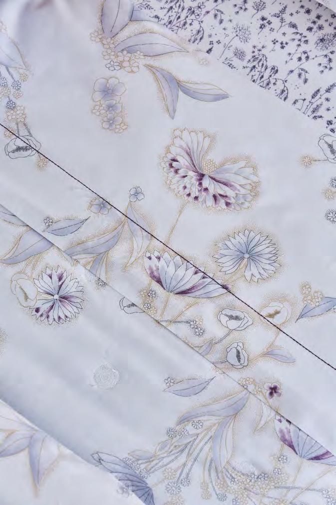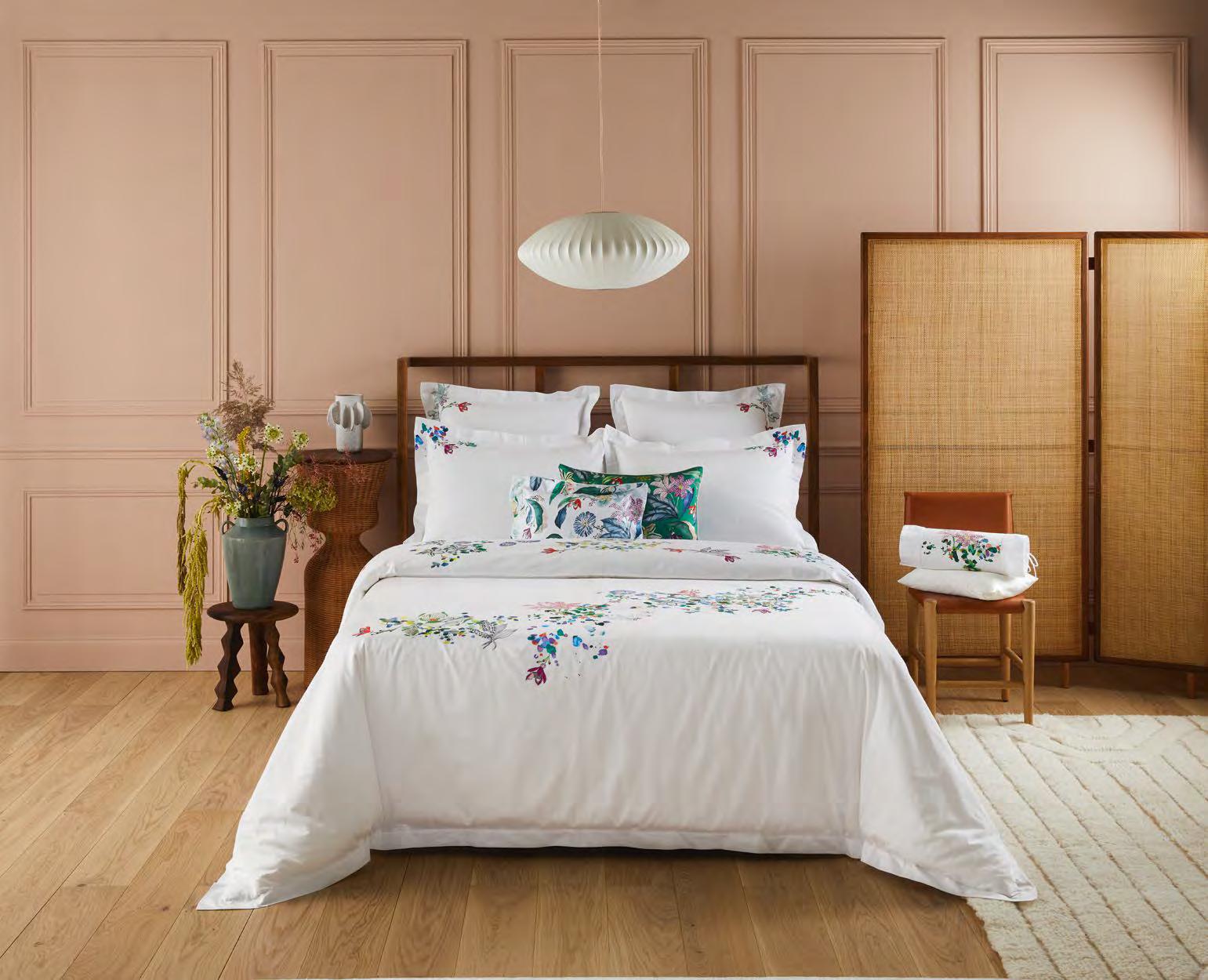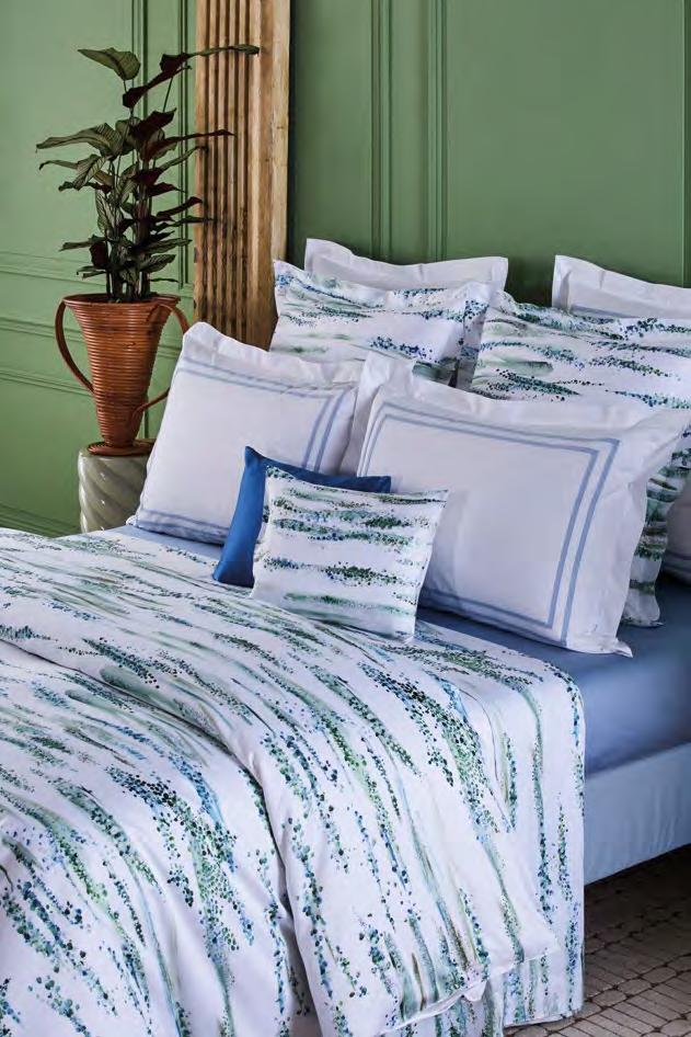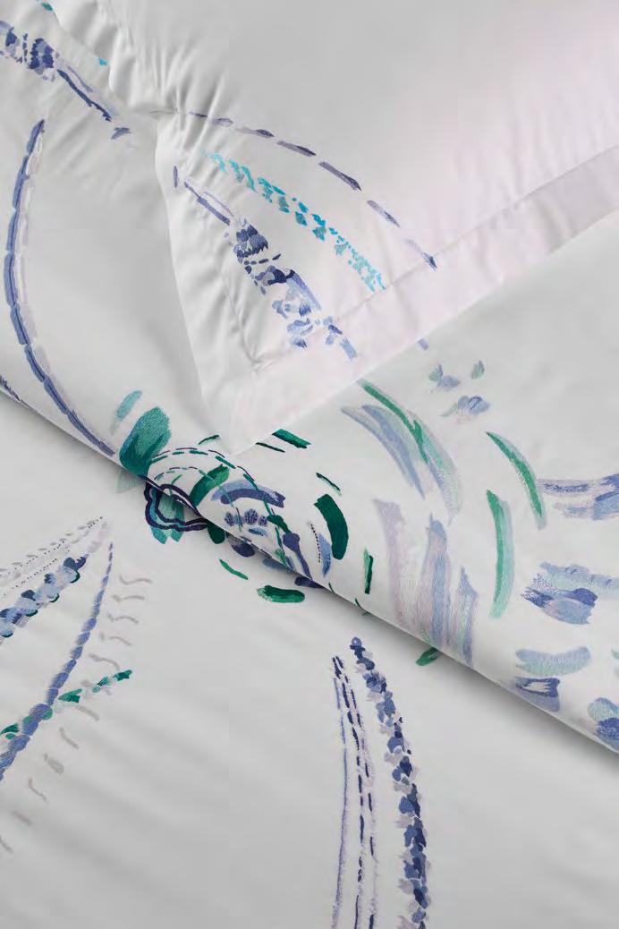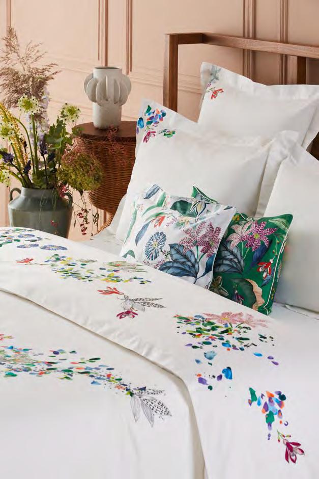The rustling of wings or leaves. Close your eyes and see the colours flutter like fireflies, in touches of watercolour from green to lilac, on cotton sateen.