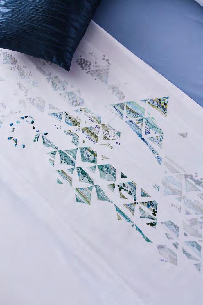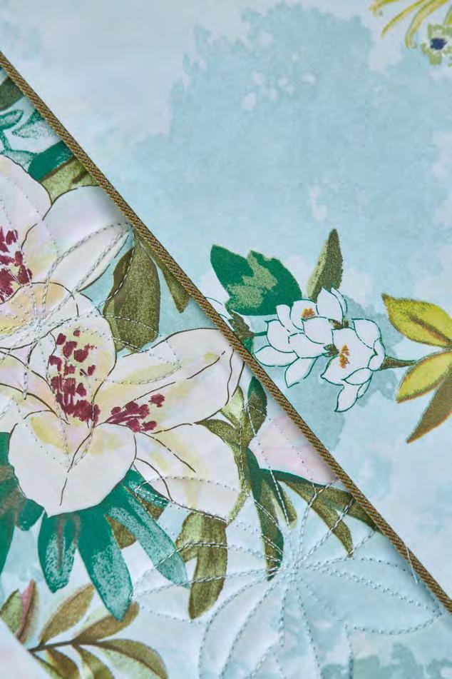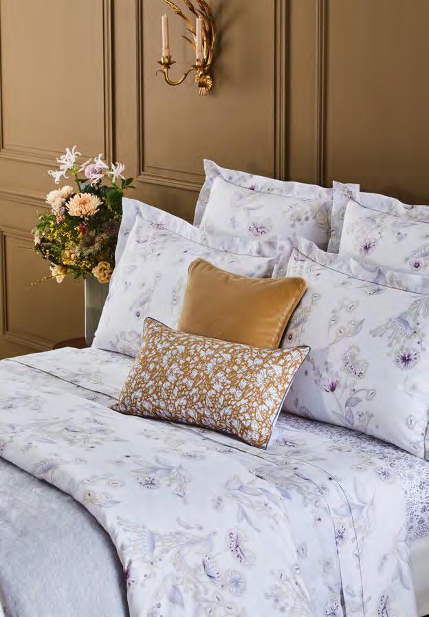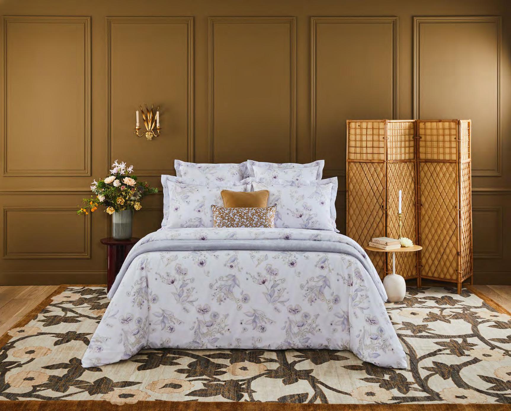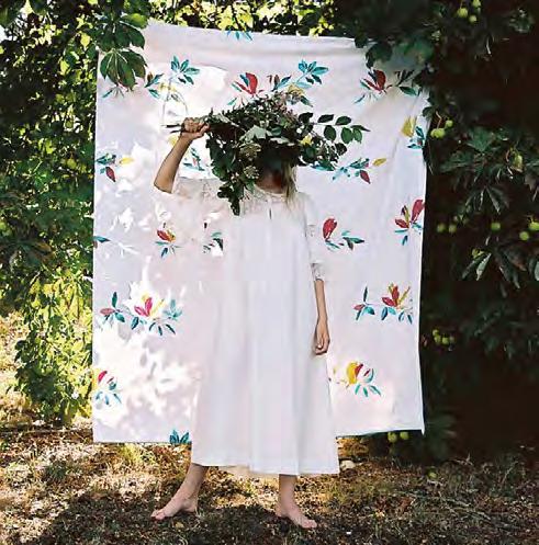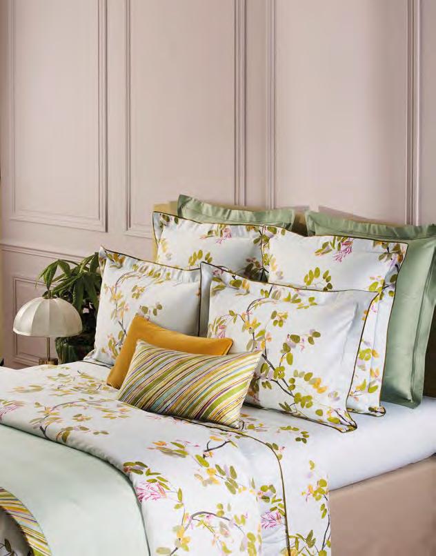 The rustling of wings or leaves. Close your eyes and see the colours flutter like fireflies, in touches of watercolour from green to lilac, on cotton sateen.