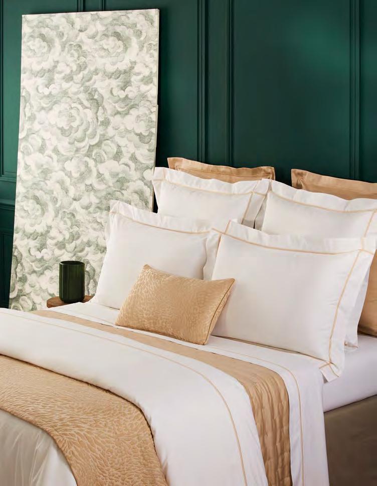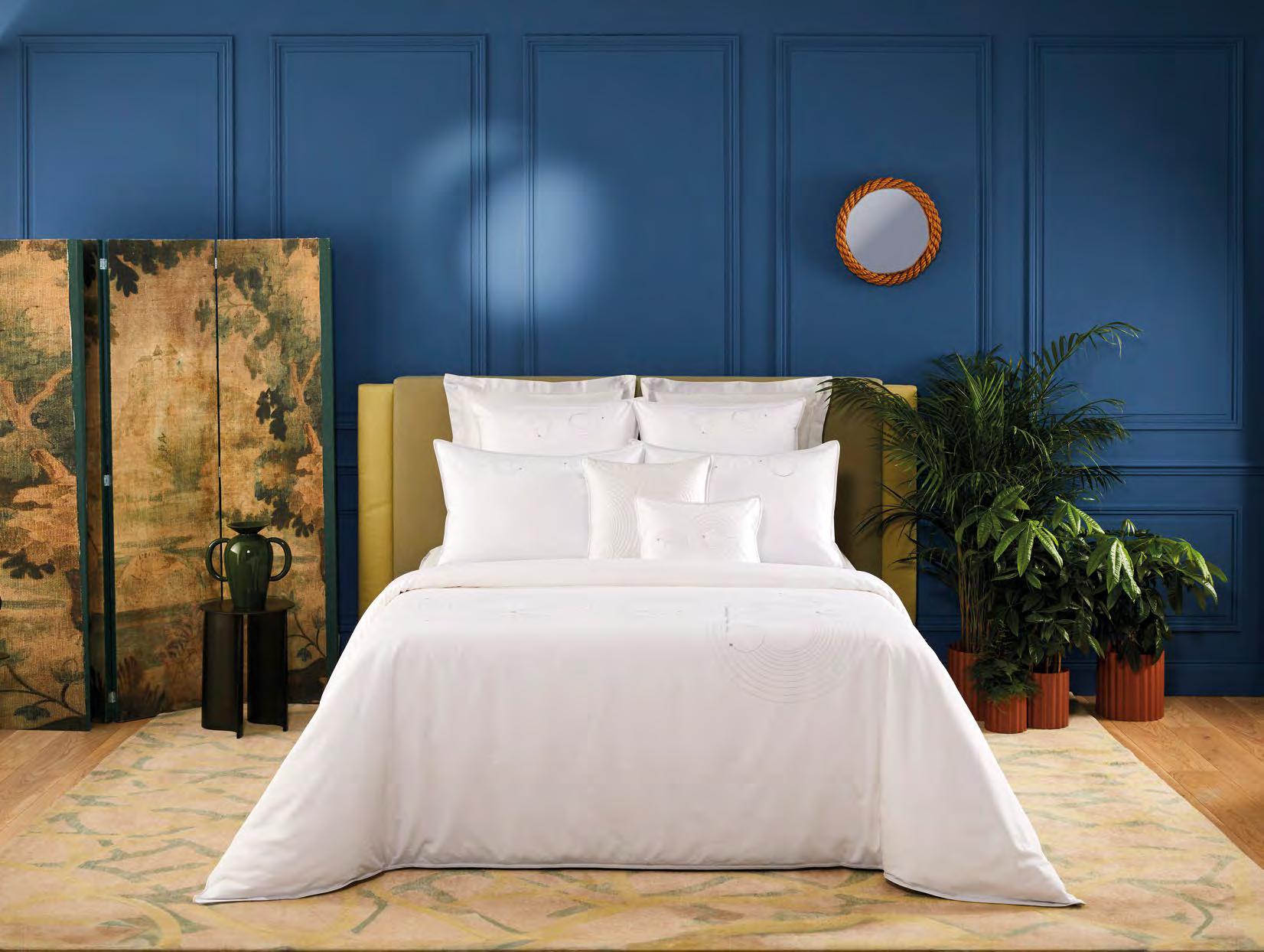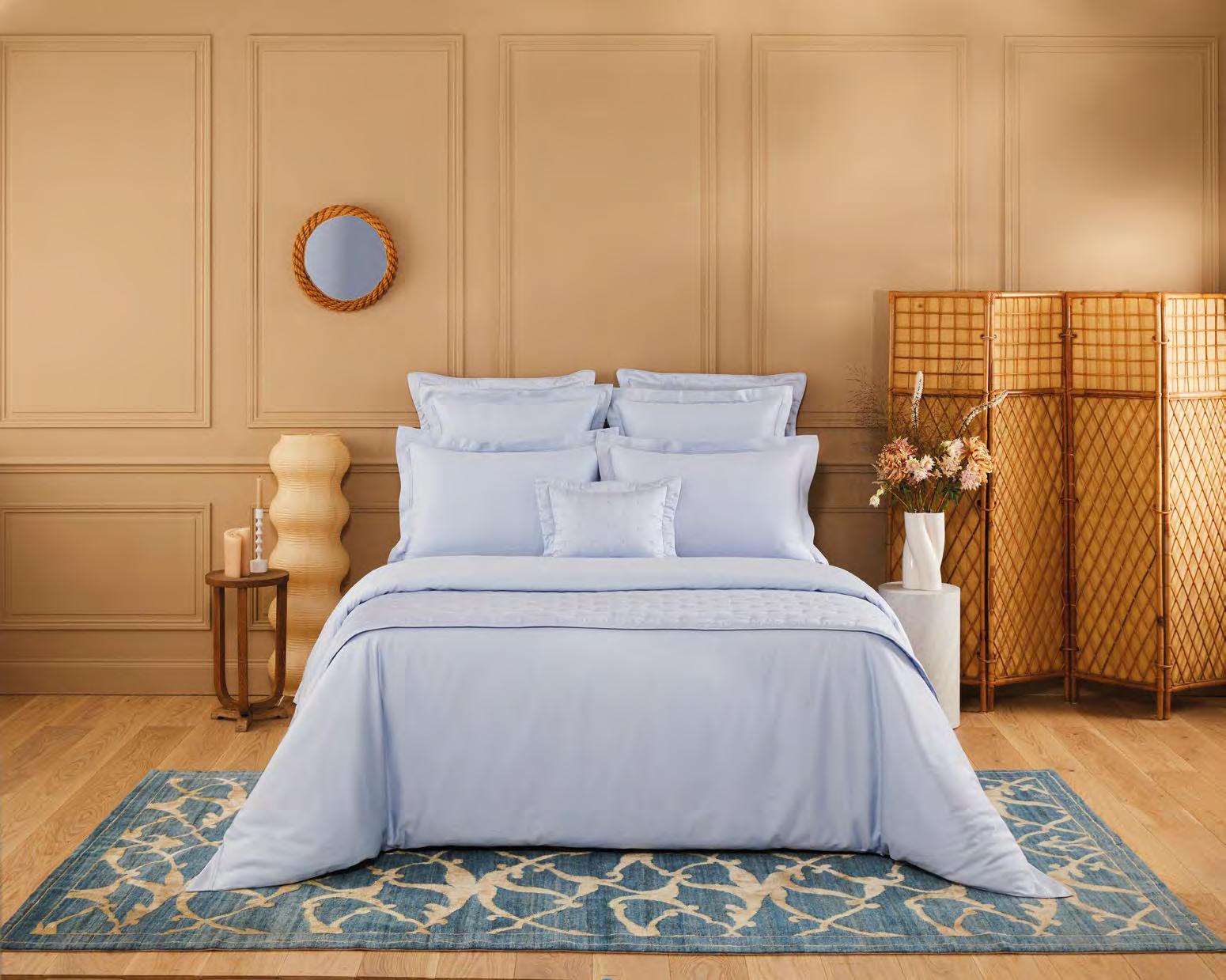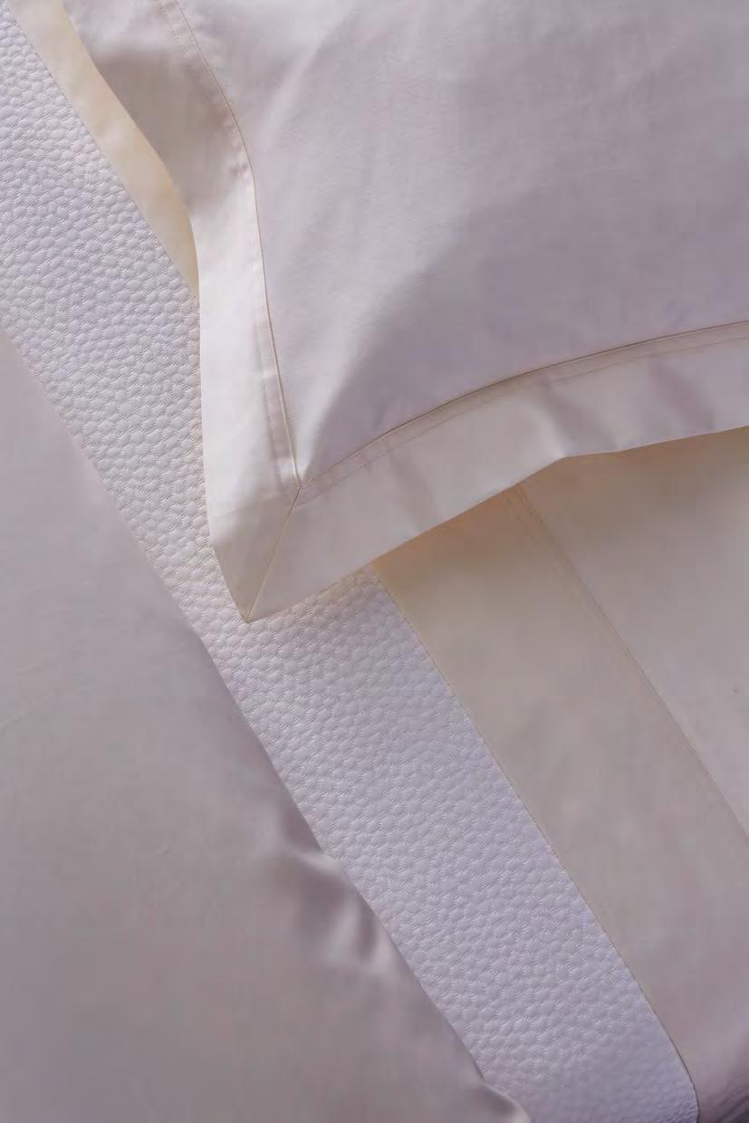 Voir tarifs. See price list. Satin, 100 % coton peigné longues fibres biologique, 120 fils/ cm². Rembourrage 100 % polyester. 100% long staple combed organic cotton sateen, 300 thread count. Padding 100% polyester. Uni, matelassage pois, finition biais. Solid color, dot shape stitching, bias finish. Tunisia