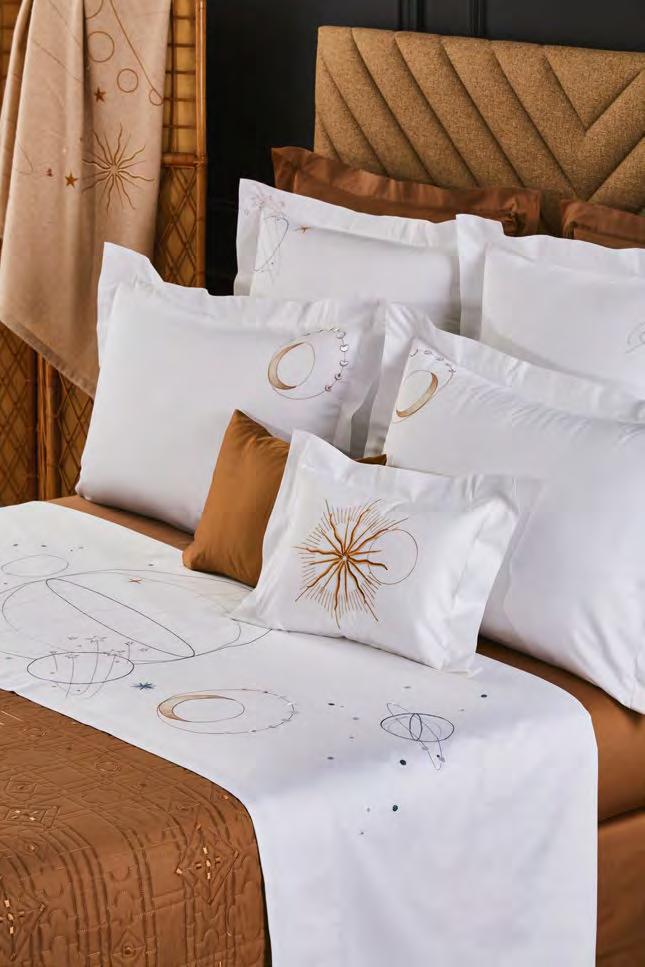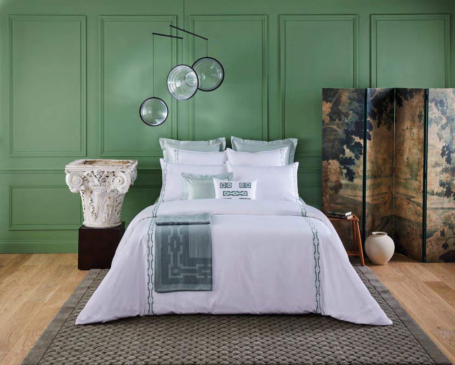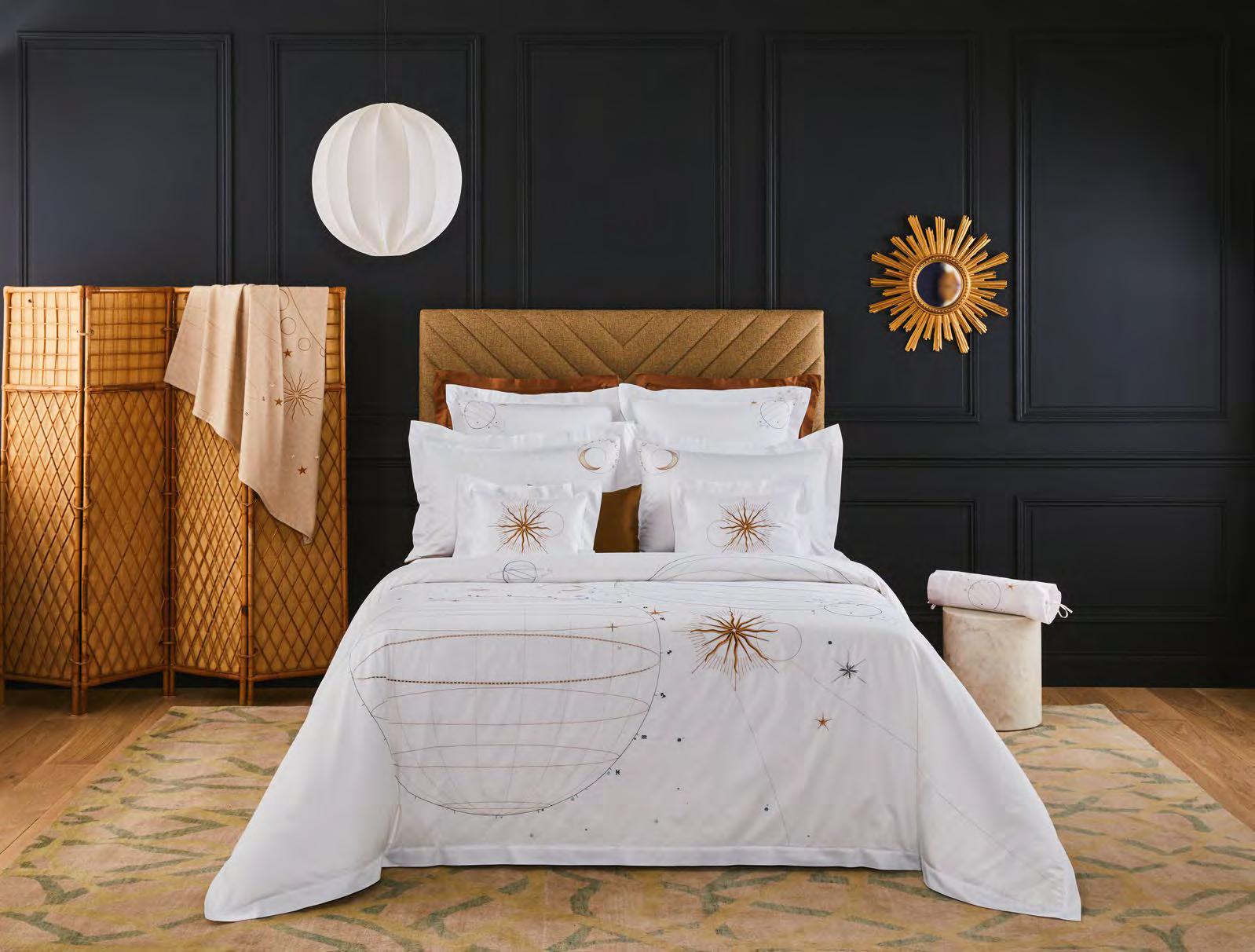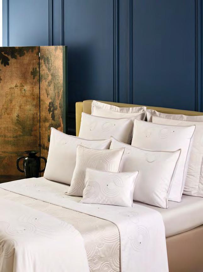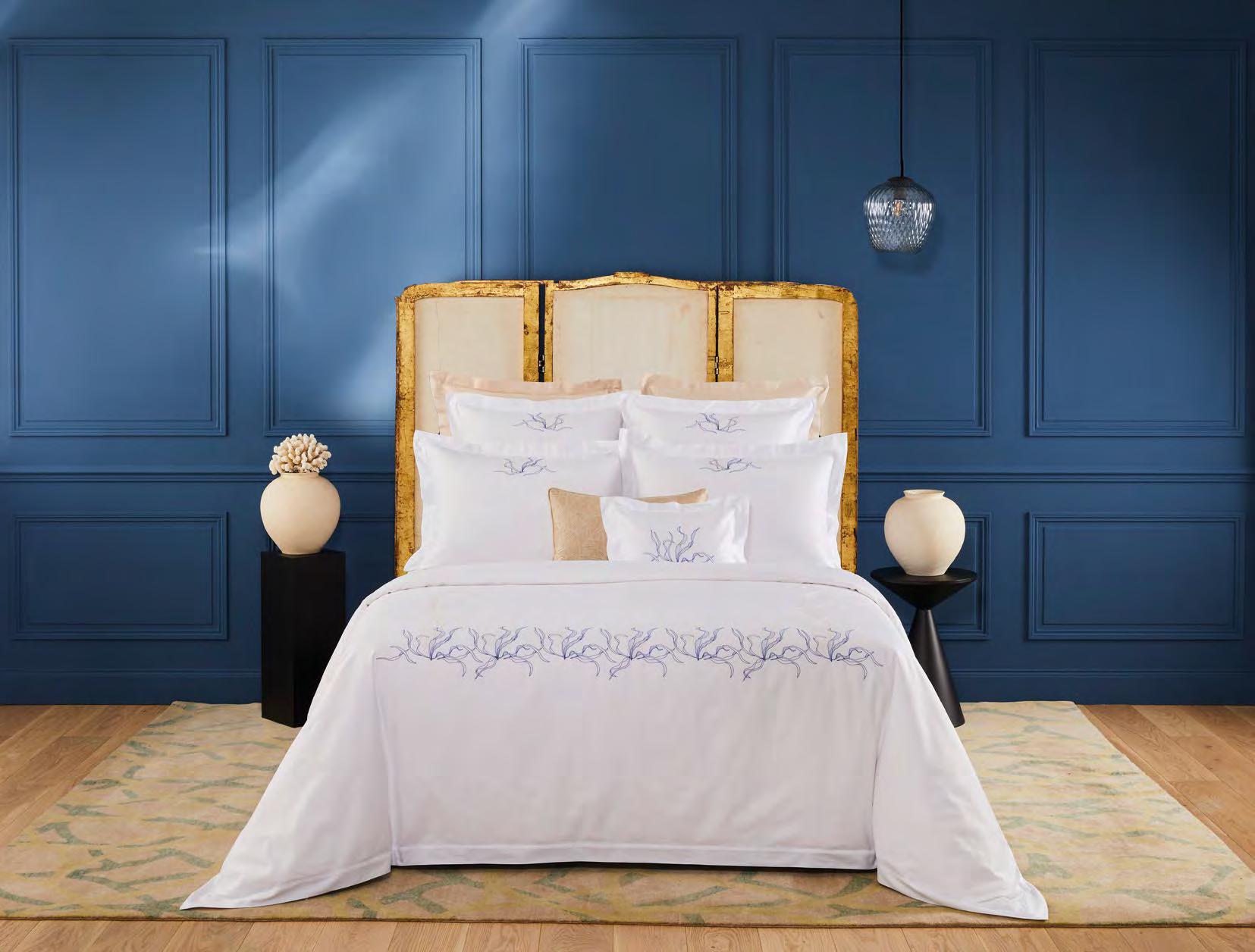 Voir tarifs. See price list. Satin, 100 % coton peigné longues fibres biologique, 120 fils/ cm². Rembourrage 100 % polyester. 100% long staple combed organic cotton sateen, 300 thread count. Padding 100% polyester. Uni, matelassage pois, finition biais. Solid color, dot shape stitching, bias finish. Tunisia