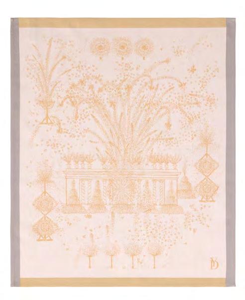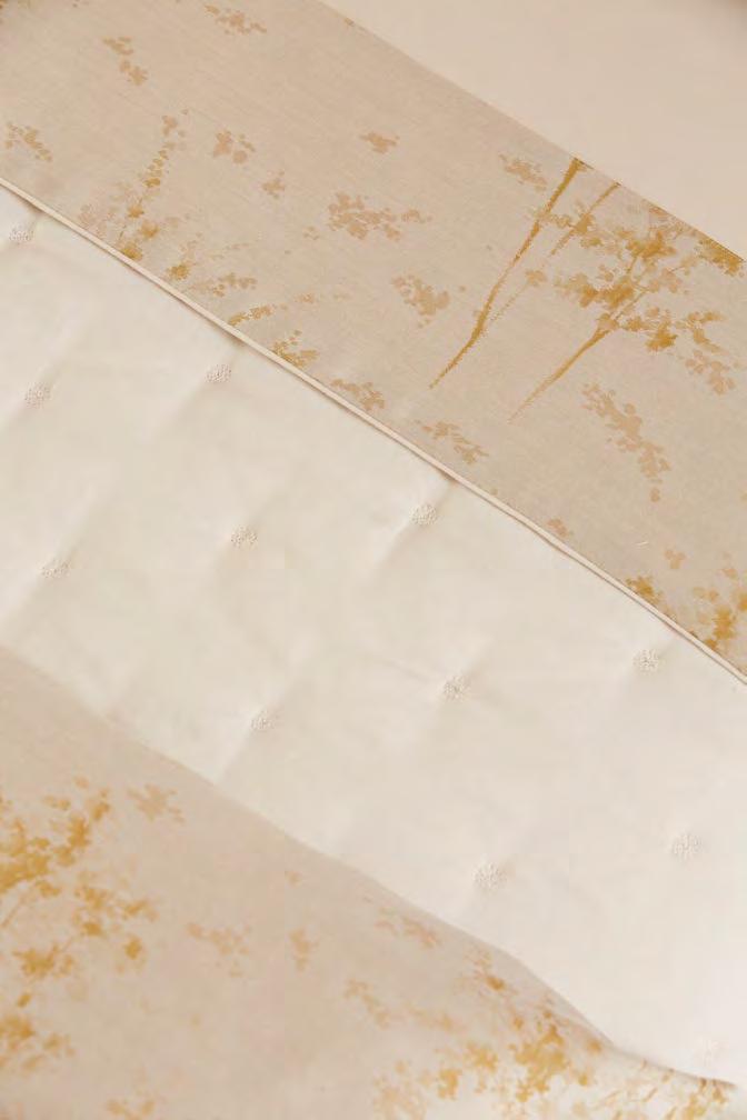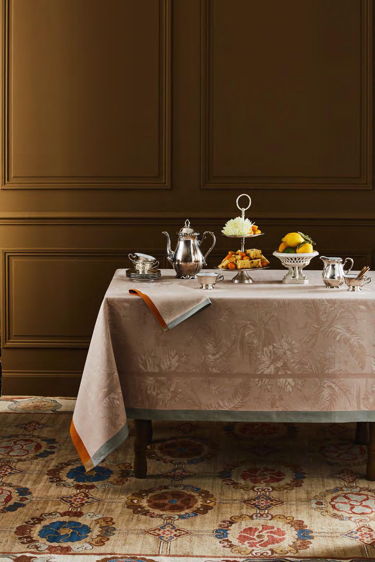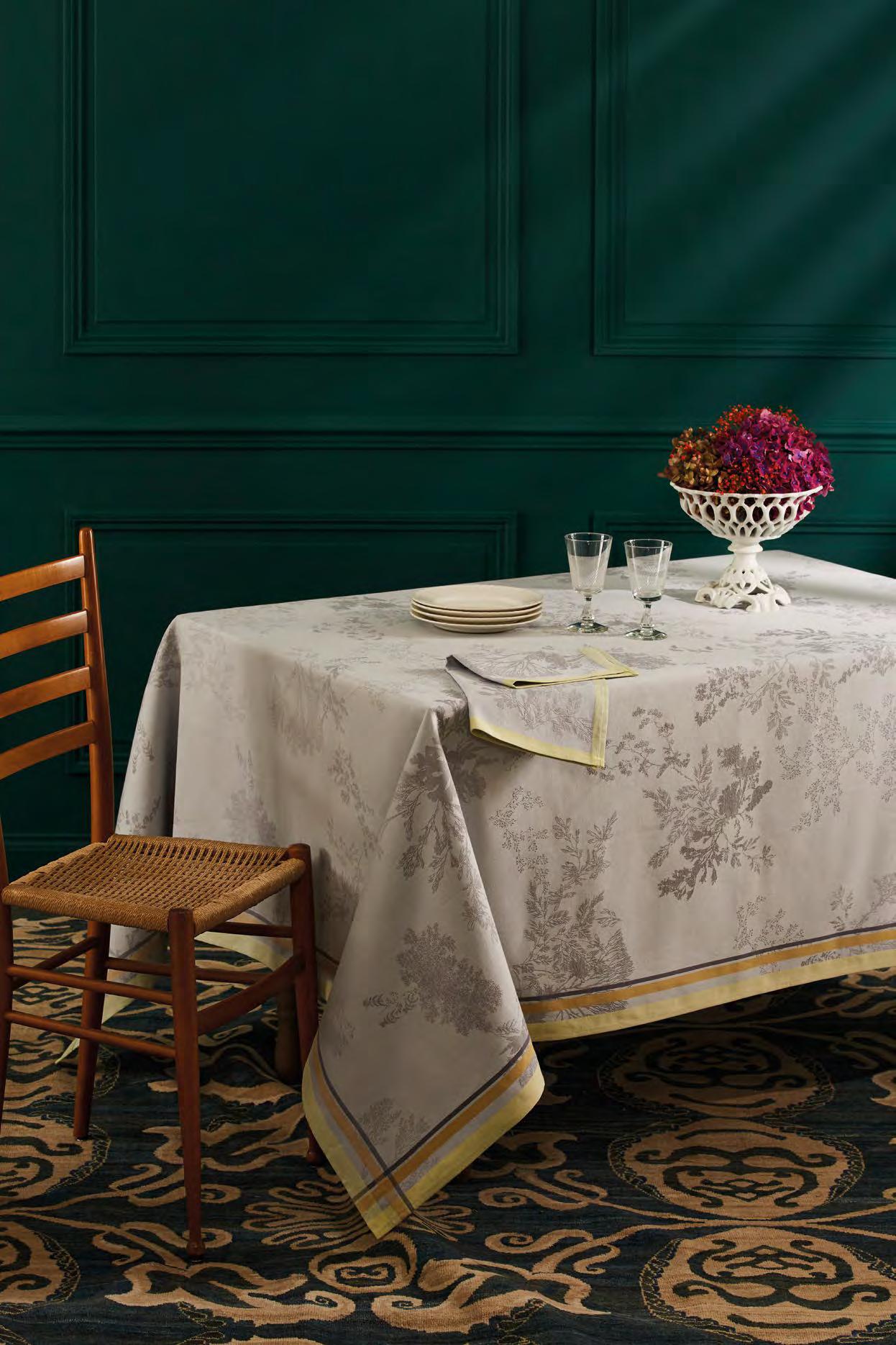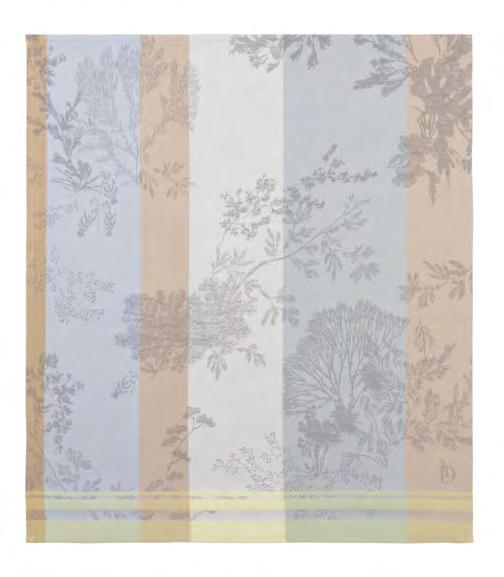 A calm and intriguing undergrowth, a protective shelter of trees. Jacquard in vogue, where the foliage tells a story of delicate weaving in golden light.