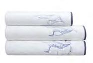 Drap plat avec parement appliqué de 10 cm au dos. Drap housse dans la réversibilité du modèle (bonnet 40 cm - convient aux matelas ayant une épaisseur de 35 cm maximum). Taies réversibles avec volant de 5 cm.