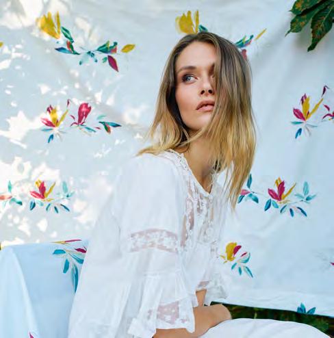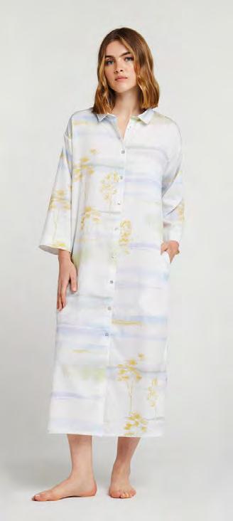 A landscape of vapours and diluted inks where time has stopped. A dreamlike tale conveyed by the softness of graduated pastels and the light cotton batiste.