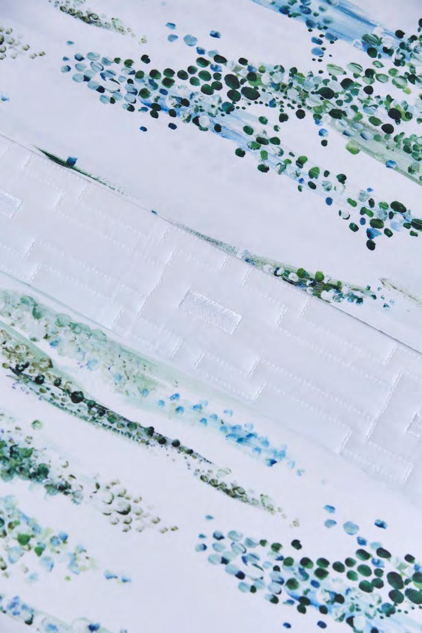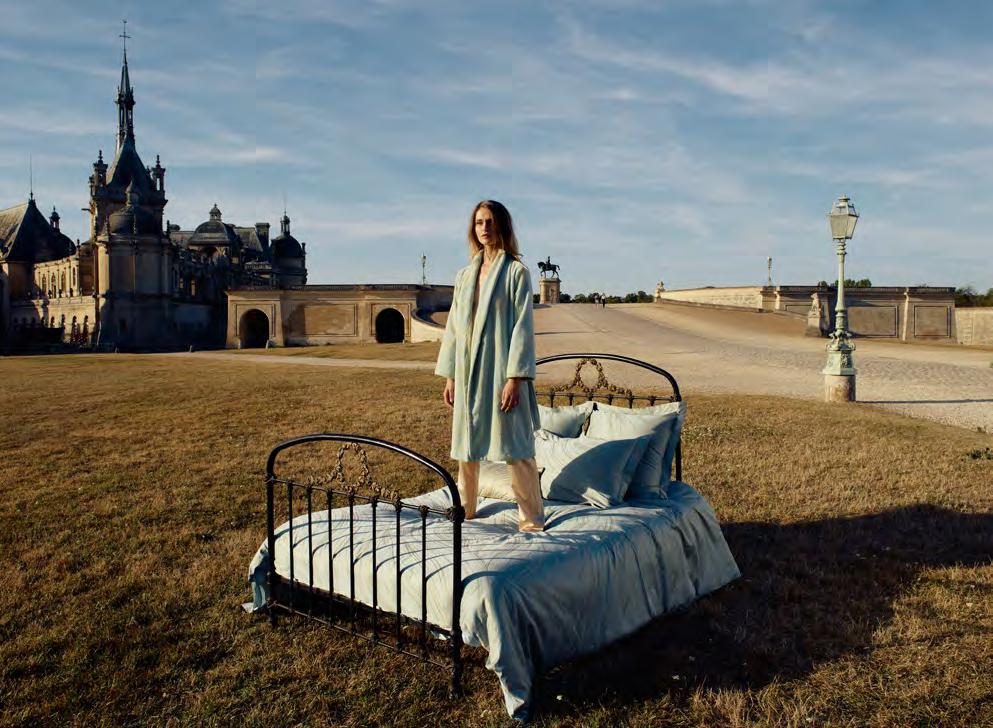 Paysage de vapeurs et d’encres diluées où le temps s’est arrêté. Un conte onirique évoqué par la douceur des pastels dégradés et la légère batiste de coton.