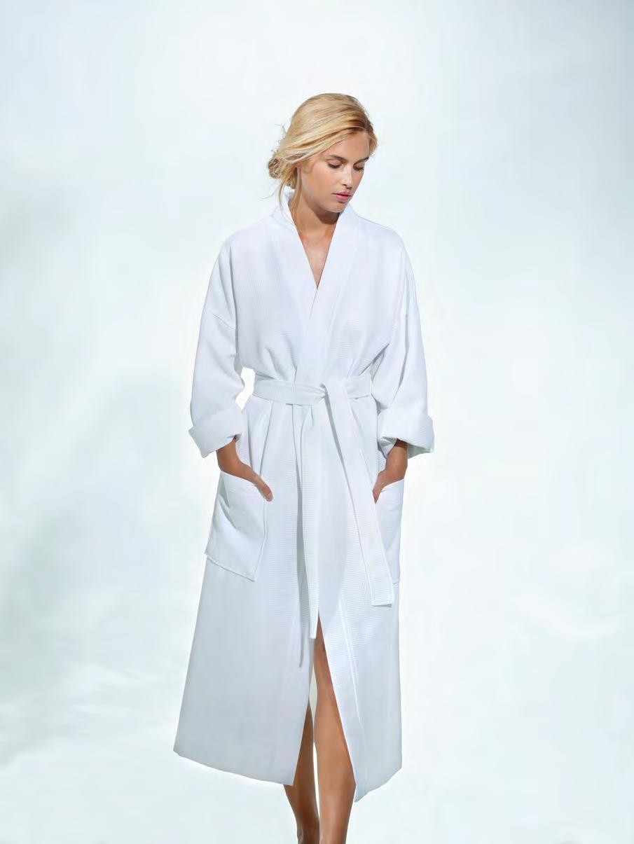 XS/S/M/L/XL/2XL. Longueur 125 cm. Length 49”. Manches 3/4, poches côtés et boutons en nacre Agoya