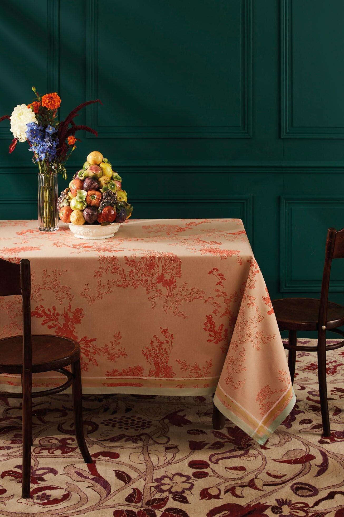 A calm and intriguing undergrowth, a protective shelter of trees. Jacquard in vogue, where the foliage tells a story of delicate weaving in golden light.