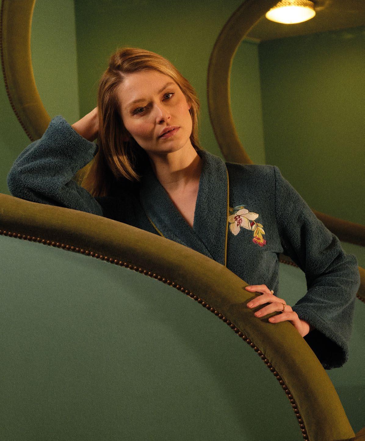 L’imprimé spectaculaire Yves Delorme. Comme un conte onirique. Un imprimé de paysages lointains et d’encres diluées se diffuse sur du satin de coton. Formes chics, pures et modernes. Pyjama inspiré des tenues d’Orient.