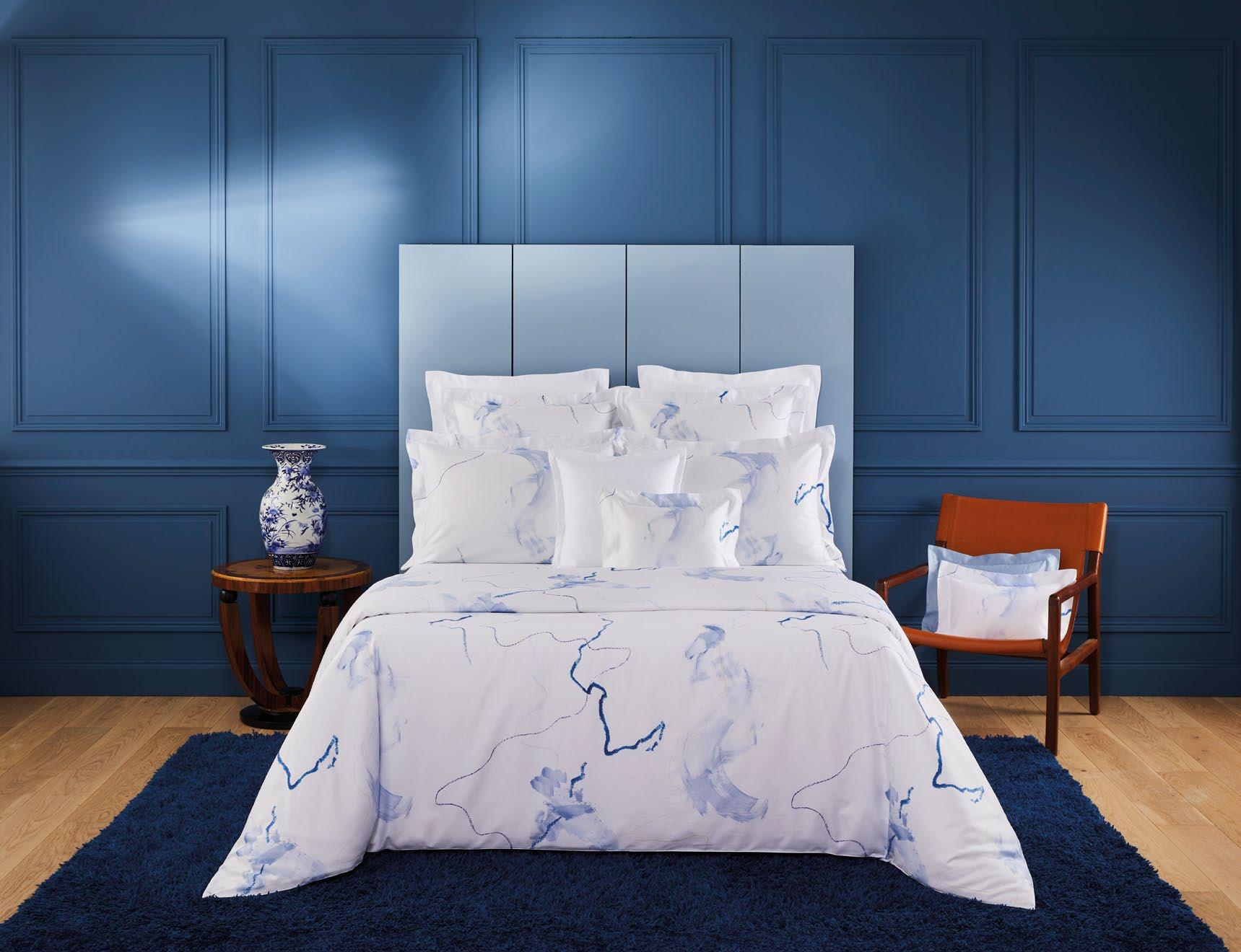 A spectacular Yves Delorme print. A dreamlike tale. A print of distant landscapes and diluted inks unfolds on cotton sateen. Chic, sleek and modern shapes. Pyjamas inspired by apparel from the East.