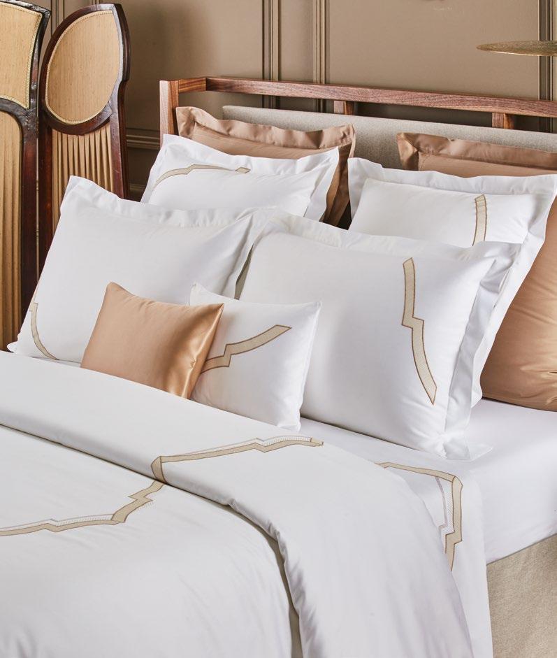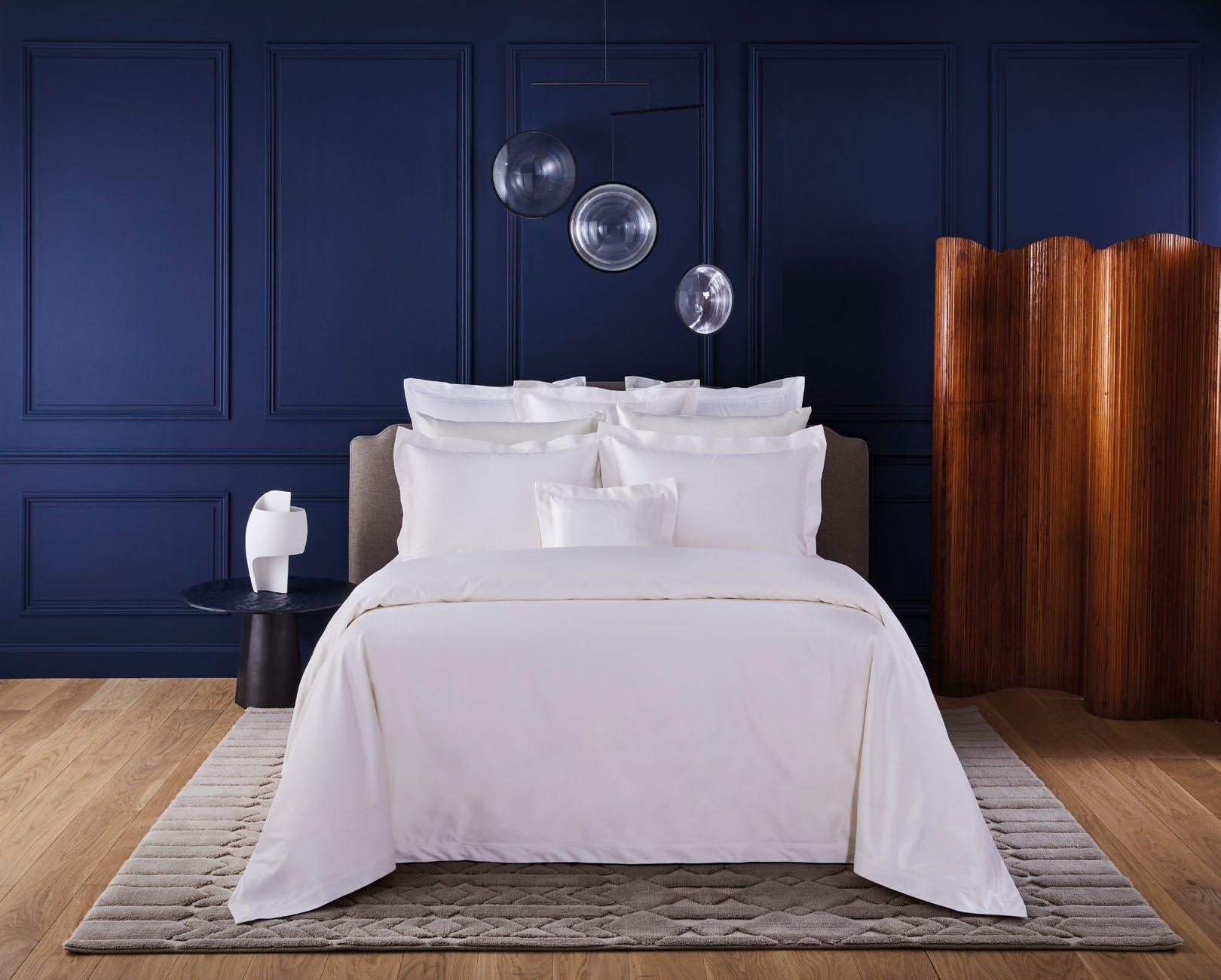 Voir tarifs. See price list. Satin, 100 % coton peigné longues fibres biologique, 120 fils/ cm². Rembourrage 100 % polyester. 100% long staple combed organic cotton sateen, 300 thread count. Padding 100% polyester. Uni, matelassage pois, finition biais. Solid color, dot shape stitching, bias finish. Tunisia