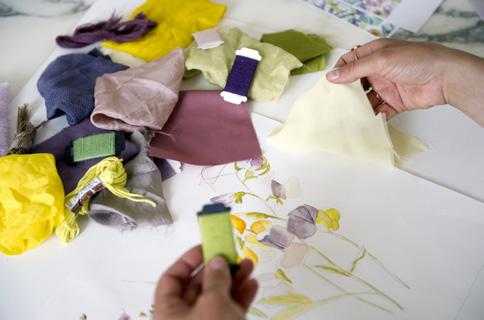 Bruissement d'ailes ou de feuilles. Fermer les yeux et voir les couleurs papillonner comme des lucioles, en touches d'aquarelle du vert au lilas, sur satin de coton.