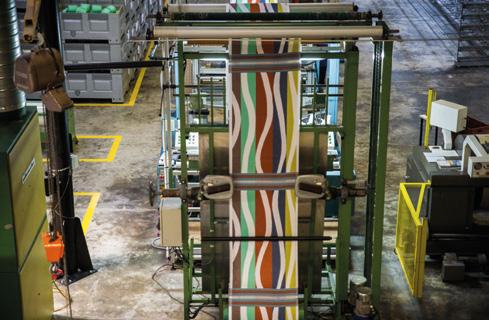 Printed, 14 colors for main design, 4 color for coordinated design. Reversible duvet cover. Bias finish for flat sheet and shams. Flat sheet with 4” hem Fitted sheet in coordinated design. Reversible sham with 2" flounce.