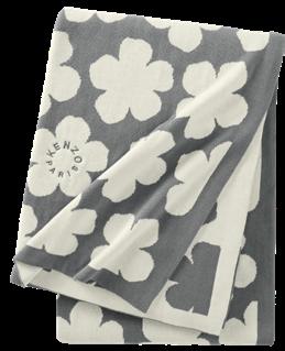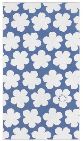 Satin imprimé, 100% tencel, 120 fils/cm². Pour la taie, finition passepoil marine, vignette signature KENZO au dos.