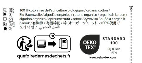 Il explique au client final comment recycler le linge de maison. C’est une obligation de la loi française AGEC. Les couettes et les oreillers ne sont pas inclus dans cette catégorie.