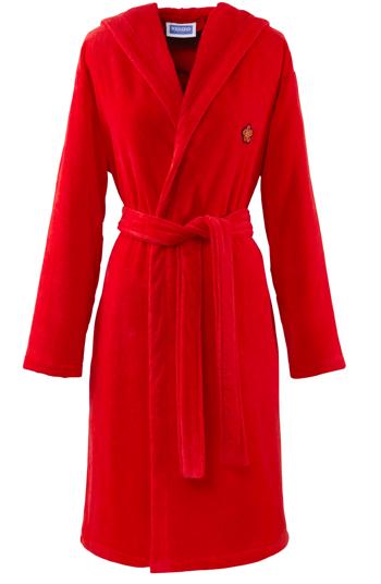 Peignoir féminin en velours uni avec capuche. Broderie dans le dos et patch poitrine.