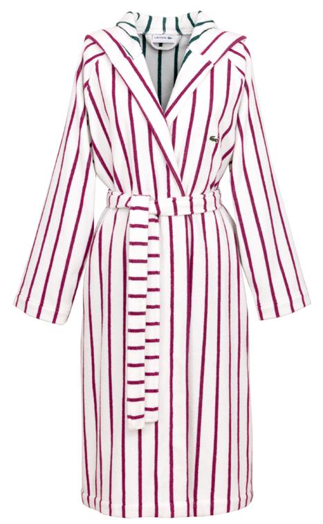 Kimono mixte boucle. Broderie grand médaillon LACOSTE dans le dos. Crocodile de 25 mm vert appliqué. Eponge 100% coton biologique. 400 gr/m². Unisex kimono loop robe. LACOSTE medaillon embroired on the back. Applied green crocodile 25 mm. 100% organic cotton. 400 gsm.