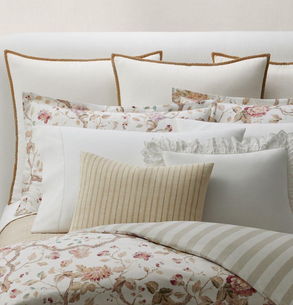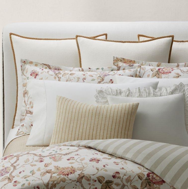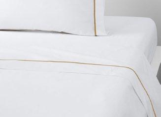 percale 90 fils/cm 2 . Housse de couette, drap plat, taie à volant, 2 taies sac, boudoir.