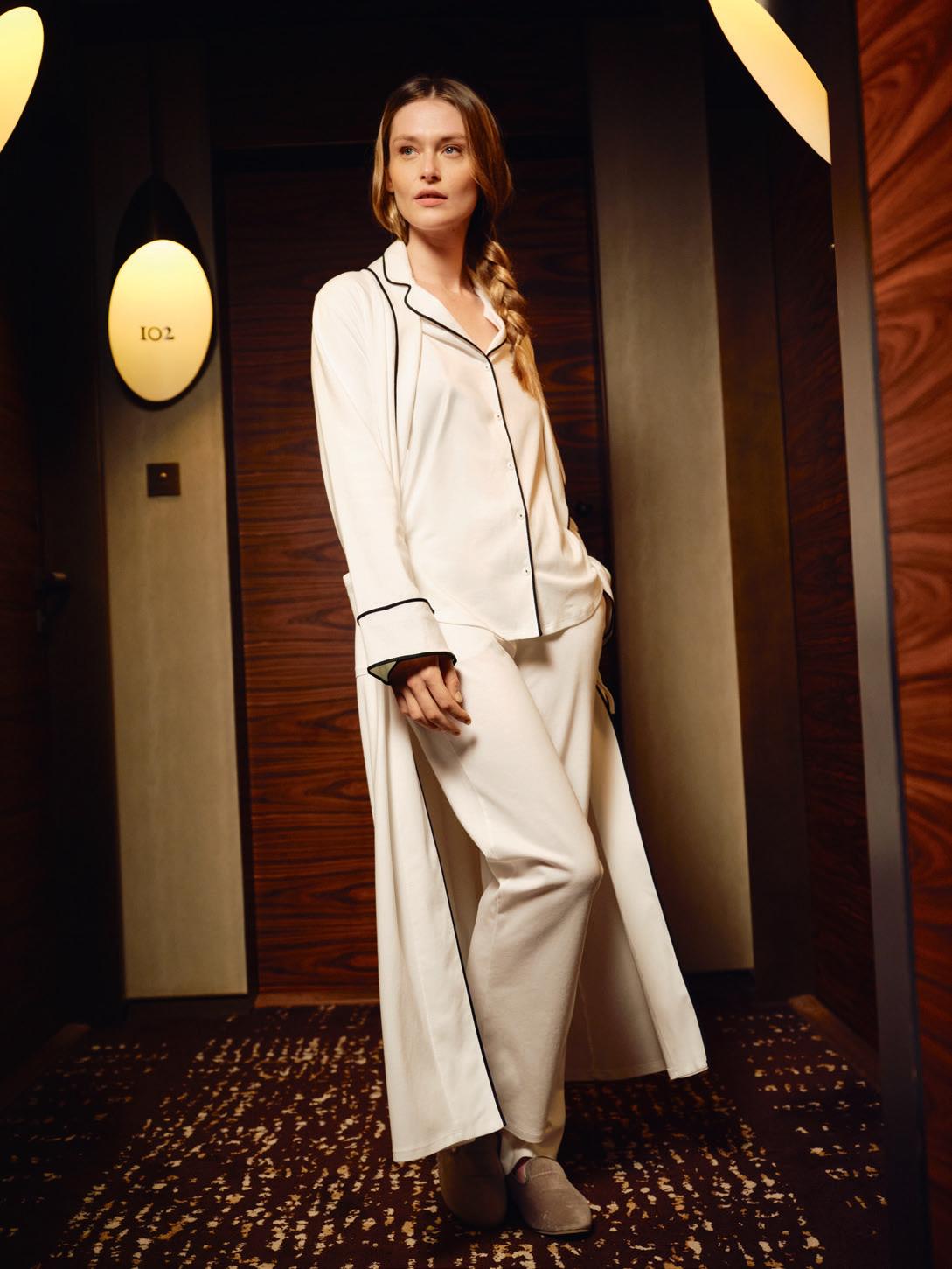 Long kimono Douceur Cachemire Écru and long nightdress Joy Écru.