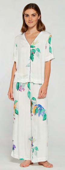 Satin imprimé, 100% coton. Manches courtes, entièrement boutonnée.