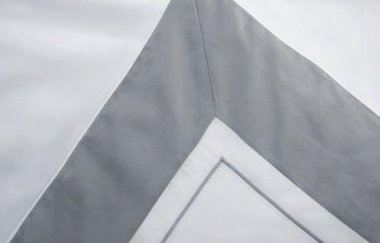 Housse de couette réversible, drap avec parement appliqué de 10 cm au dos, drap housse dans la réversibilité du modèle et taies réversibles.