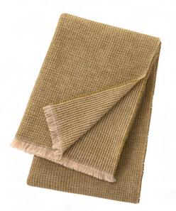 Woven bicolor throw. 3cm hem finish and mitered corners. 100% cotton. 55” x 71”.