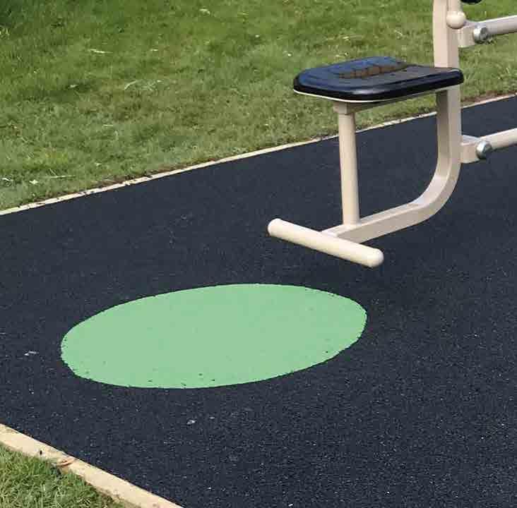The area around the equipment can be finished with grass wear mats (tiles) when installed into grass. Other surfacing solutions that are used include rubber crumb (wet-pour), shredded rubber mulch, or tarmac. Wet-pour and rubber mulch can be used when equipment is installed into grass or tarmac. Fresh Air Fitness can provide groundworks as well as surfacing for your outdoor gym.