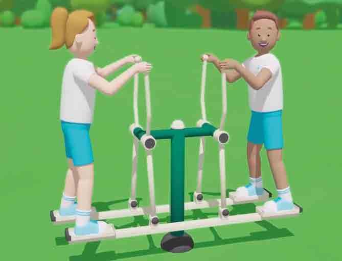 The Double Cross Country Skier has been especially designed to provide a full body workout. Just like cross-country skiing, users stand on the foot plates, moving legs forwards and back while using their arms to drive the handles forwards and back. Users can work individually or in pairs for some synchronised skiing! Builds stamina, balance and coordination