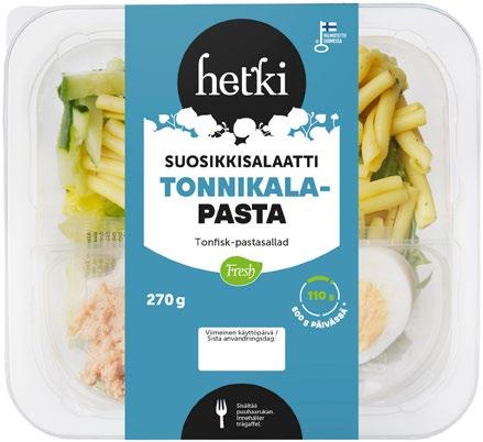 Hetki Suosikki-salaattiateriat Hetki Suosikkisalaatit ovat Suomen suosituimpia salaattiaterioita! Salaatit on helppo syödä missä tahansa, sillä jokaisen salaatin mukana tulee haarukka. Pakkauksista löytyy myös runsaasti hyvinvointia koskevaa tietoa: tuotteiden ravitsemuksellisista ominaisuuksista kertova syö hyvä olo -merkki sekä kasvisten määrästä kertova 500 g -päivässä merkki. Myös pakkausmateriaalien kierrätys käy helposti pakkauksista löytyvien kierrätysohjeiden ansiosta.