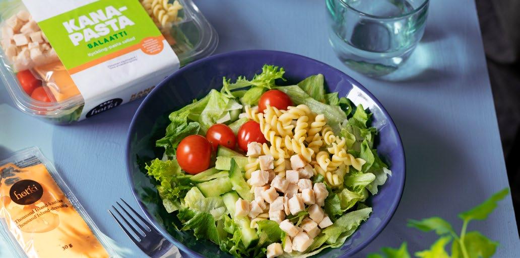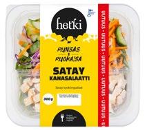 Ruokaisat Hetki-salaattiateriat Markkinasta löytyy kysyntää täyttävämmille salaattiaterioille. Olemme lanseeraaneet vastauksena tähän ruokaisat Hetki-salaattiateriat! Ruokaisilla salaateilla saa varmasti vatsan täyteen, sillä niissä on runsaasti pastaa, nuudelia tai riisiä proteiinin, kasvisten ja kastikkeen lisäksi. Nämä salaatit ovat myös pakkauskooltaan reiluja, joten niistä riittää isompaankin nälkään. Proteiinin lähteenä salaateissa on joko broileria, juustoa tai papuja ja kikherneitä. Uudet isommat kastikkeet tuovat runsaasti makua salaatteihin, ja niistä löytyykin herkullisia makuja Amerikasta, Välimereltä, Meksikosta ja Aasiasta. Salaattien mukana tulee haarukka ja etiketeissä on selkeät pakkausmateriaalien kierrätysohjeet.
