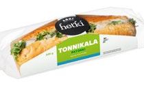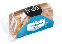 Ainesosat: Rieska 54 % (vehnäjauho, vesi, ruisjauho, siirappi, sokeri, hiiva, rapsiöljy, suola, perunatärkkelys, nostatusaine (E503), fenkoli, anis, kasviemulgointiaineet (E471, E472), mallasjauho (ohra)), majoneesi (rapsiöljy, kananmunankeltuainen, väkiviinaetikka, vesi, sinappi (väkiviinaetikka, sinapinsiemen, vesi, suola, kurkuma), suola, sakeuttamisaineet (E412, E415), aromi, hapettumisenestoaine (E385)), tonnikala 17 % (tonnikala (Katsuwonus pelamis), auringonkukkaöljy, suola), maustekurkku (kurkku, vesi, etikka, sokeri, suola, säilöntäaineet (E211, E202), stabilointiaine (E509), aromit), punasipuli, tilli, sitruunamehu (vesi, sitruunamehutiiviste, säilöntäaine (kaliumdisulfiitti)), muunneltu maissitärkkelys, mustapippuri Säilyvyys myyntipisteessä vähintään 6–7 päivää (alle +6 °C)
