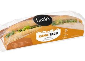 Ainesosat: Moniviljapatonki 54 % (VEHNÄ, vesi, leipäseos (maissihiutale, pellavansiemen, hirssi, auringonkukansiemen, RUISHIUTALE, VEHNÄGLUTEENI, dekstroosi, VEHNÄMALLASJAUHO, rapsiöljy, entsyymi, jauhonparanne (E300)), sokeri, hiiva, leivänparanne (vesi, VEHNÄJAUHO, suola, hapanjuuri (VEHNÄ), emulgointiaine (E472e)), rypsiöljy, jodioitu suola, OHRAMALLASJAUHO), tacomajoneesi 26 % (majoneesi (rapsiöljy, vesi, KANANMUNA, SINAPINSIEMEN, sokeri, suola, etikka, cayennepippuri, happamuudensäätöaineet (E270, E330), säilöntäaine (E202)), tacomausteseos, muunnettu tärkkelys), tacomaustettu broileri 8,7 % (broilerin filee (EU), vesi, tapiokatärkkelys, suola, maltodekstriini, mausteet (chili, juustokumina, valkosipuli, oregano), rypälesokeri, sipuli, hiivauute, perunatärkkelys, perunakuitu, paakkuuntumisenestoaine (E551), mausteuute (paprika)), cheddarjuusto 4,3 % (pastöroitu MAITO, suola, hapate, juoksute, väri (E160a), perunatärkkelys), jääsalaatti