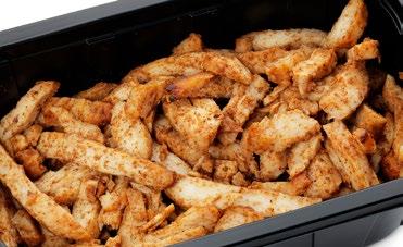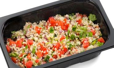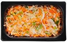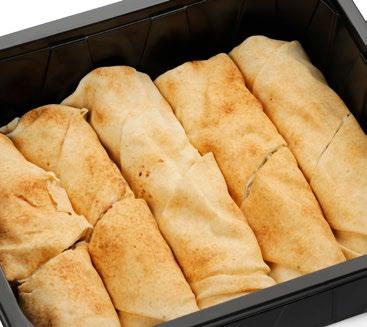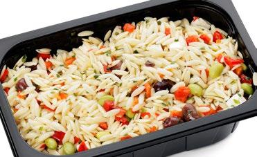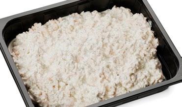 Ainesosat: Kurkku, broileri 20 % (broilerin filee (EU), vesi, tapiokatärkkelys, suola, maltodekstriini), tomaatti, ananas, salaattisekoitus (jäävuori-, jää- ja punainen friseesalaatti) Avokadokastike 200 g: vesi, rapsiöljy, avokado 7,5 %, sokeri, limetäysmehu (tiivisteestä) (sulfiitti), muunneltu maissitärkkelys, maustetahna (korianteri, vesi, auringonkukkaöljy, suola, sokeri), väkiviinaetikka, suola, kananmunankeltuaisjauhe, mausteet (valkosipuli, sipuli, mustapippuri), säilöntäaineet (E202, E211), sakeuttamisaineet (E412, E415). Pakattu suojakaasuun. 6 406510 702269 70186 2,3 KG GN 1/1 UUTUUS KREIKKALAINEN