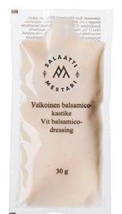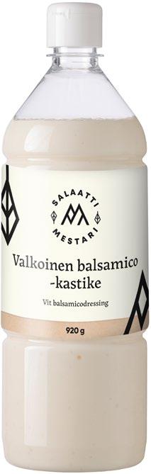 Ainesosat: Rapsiöljy, vesi, sokeri, vaalea balsamietikka (viinietikka, rypälemehutiiviste, hapettumisenestoaine (kaliumsulfiitti)), sinappi (vesi, sokeri, sinapinsiemen, etikka, jodioitu suola, rypsiöljy, väri (E150a), valkopippuri), väkiviinaetikka, suola, muunnettu maissitärkkelys, valkopippurijauhe, säilöntäaine (E202), sakeuttamisaine (E415)