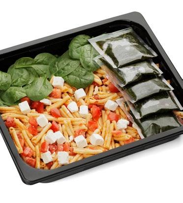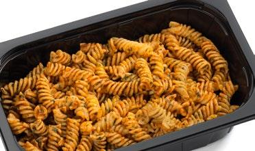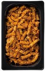Ainesosat: Chilimaustettu pasta 58 % (keitetty pasta (vesi, pasta (durumvehnä, vesi), tomaattisalsa (tomaatti, sipuli, tomaattimurska (tomaatti, tomaattimehu), sokeri, paprika (paprika, vesi, suola, viinietikka, sokeri), sitruunapyree, limetäysmehu (tiivisteestä) (E224 kaliumdisulfiitti), appelsiini-balsamico (balsamietikka (valkoviinietikka, rypälemehutiiviste), appelsiinimehutiiviste, appelsiinikuoriuute, luontainen appelsiiniaromi, luontaiset aromit, hapettumisenestoaine (E224 kaliumdisulfiitti), valkosipuli, suola, väkiviinaetikka, peperoni (paprika, vesi, suola, viinietikka, säilöntäaine (E224 kaliumdisulfiitti), hedelmäpyree (ananas, sitruuna, inkivääri, kandeerattu inkivääri (inkivääri, sokerisiirappi)), valkosipuli, sakeuttamisaineet (E440, E412), chili, mustapippuri, happamuudensäätöaine (E330), säilöntäaineet (E202, E211), oregano), rypsiöljy, buffalomausteseos (sipuli, tomaatti, valkosipuli, paprika, chili, mustapippuri, liperi, juustokumina, cayenne, oregano, suola, aromit (hiivauute, kana, paprika, chili, viinietikka), sokeri, dekstroosi, hapettumisenestoaine (E296), rapsiöljy), fetajuusto 16 % (pastöroitu lampaan- ja vuohenmaito, hapate, juoksute, suola), tomaatti, babypinaatti. Pestokastike 20g: basilika 42 %, rypsiöljy, oliiviöljy, auringonkukansiemen, vaalea balsamietikka (viinietikka, rypälemehutiiviste, hapettumisenestoaine (E224 kaliumdisulfiitti), suola, valkosipuli, sokeri, mustapippuri, juustoaromi (maito), happamuudensäätöaineet (E330, E300), muunnettu maissitärkkelys, säilöntäaineet (E202, E211). Pakattu suojakaasuun. Voimakassuolainen.