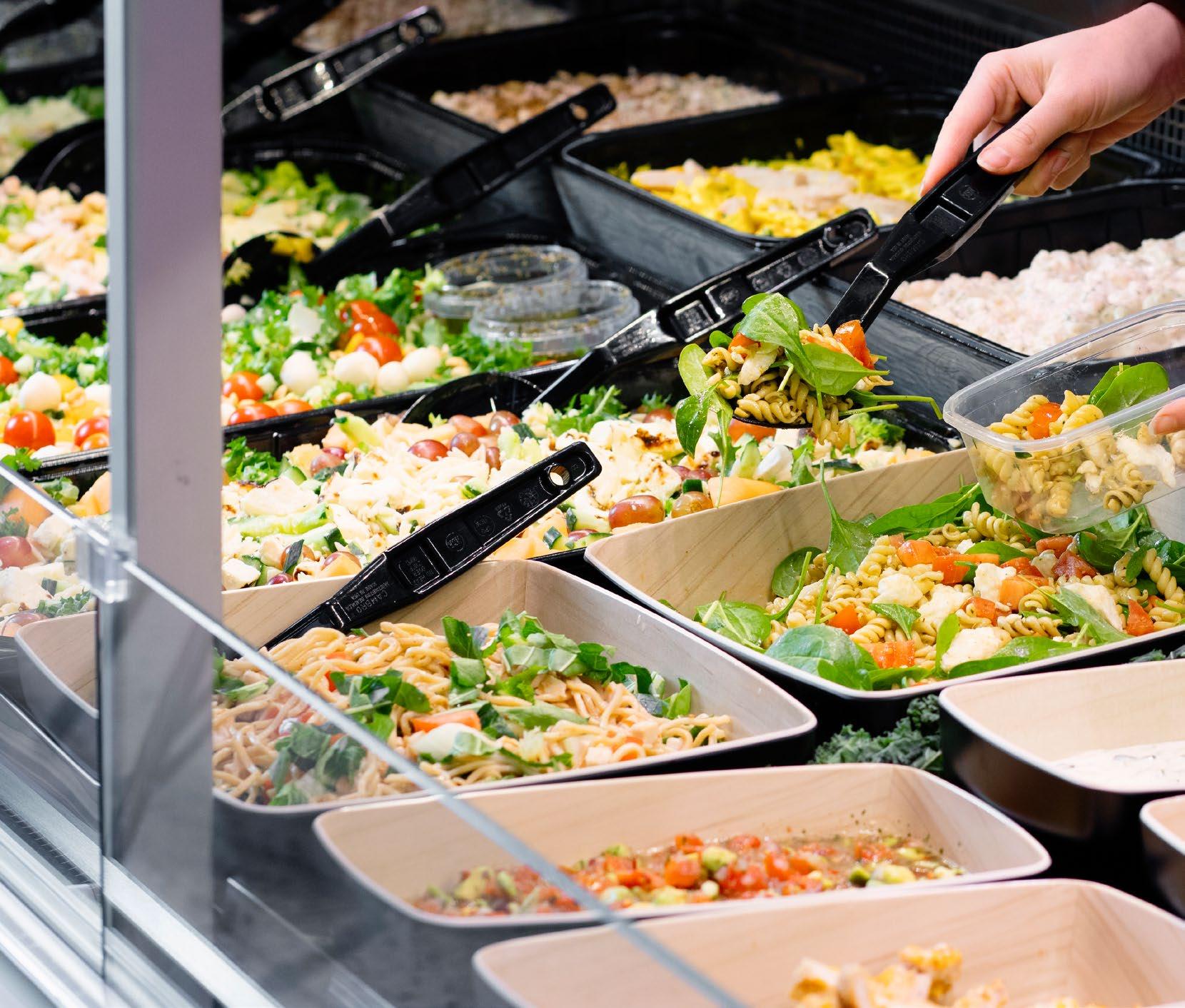 Valikoimaamme kuuluvat GN1/1-vuokiin pakatut salaatit, majoneesisalaatit, leivät, ateriat ja jälkiruoat, jotka sopivat täydellisesti palvelutiskille. Lisäksi tarjoamme monipuolisen salaattibaarituotevalikoiman.