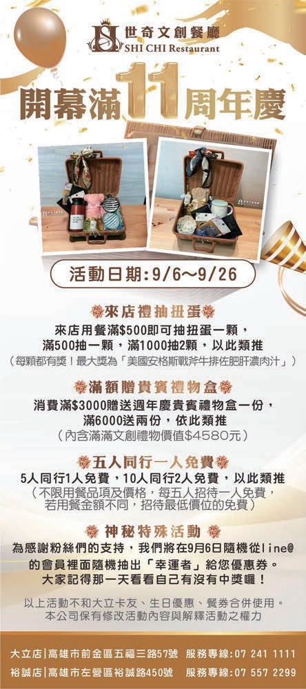 2023 年 9 月 16 日~ 9 月 30 日 廣告業務請洽:07-9581000 官方網站:https://freshweekly.tw/