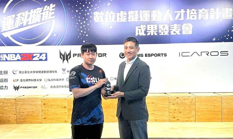 【記者/高培德報導】中華民國電子競技運動協會與國立 臺北大學合辦數位虛擬運動人才培育計畫七校聯合邀請賽 ,高市正修科技大學電競科技系正修龍隊許佑瑋(圖左)勇 奪《VR Tennis》冠軍。聯賽首輪採單淘汰制,前四名挺 進第二輪,正修龍隊盧彥翔、許佑瑋代表上場,盧彥翔首 輪失常敗北,許佑瑋表現中上,排名第3晉級。許佑瑋第 二輪先發展現實力,超越其他3名選手戰績奪冠。指導老 師呂明峻說,虛擬電競運動較不受場地限制,並採電腦自 動判讀,便利選手改正缺失,許佑瑋基本功紮實,無懼其 他好手相爭。虛擬運動應用長照,有助帶動全民運動風氣 ,網球考驗力道拿捏、揮拍精準度及體能,相較實際競賽 毫不遜色。正修科大電競系主任謝哲人說,電競賽無永遠 贏家,持續精進才能締造佳績,系上重視選手訓練,也鼓 勵大家超越自我。