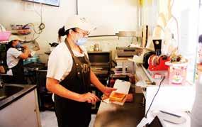米粉」,新鮮小捲在口中跳阿跳,鮮甜彈牙美味程 度直達天際;也有忠實饕客很愛點綜合炒飯,老闆 娘手撥的新鮮大蝦加上大火快炒的鍋氣,保證一口 接一口停不下來。還可以點清燙鮮蚵、蒜蒸蛤蜊、鹽 煮蝦、泰式小卷、香煎無刺魚肚、手工蚵卷…等,
