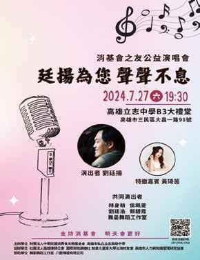 【記者/陳遍綠報導】聽演唱會還能做公益! 為迎接中華民國消費者文教基金會南區分事務 所成立30週年,特別於今年的7月27日假高雄市 立志中學大禮堂舉辦一場別開生面的「消基會 之友公益演唱」。主要演出者是由「世紀美聲 」之稱的劉廷揚教授擔綱,特別嘉賓為:黃琦 茵,共同演出者包括:林身萌、侯珮雯、劉廷 浩、賴碧霞、舞晏舞蹈工作室。劉廷揚教授表 示:「感謝大家的支持,能為消基會盡一份心 力相當開心,在此邀請好朋友們捐款支持消基 會(開立正式捐款收據,供抵稅之用)捐款 $1000元即致贈入場券一張,歡迎各界共襄盛舉 ,一起做公益」洽詢專線:07-225-1234。